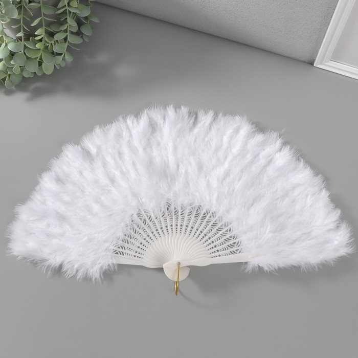 Веер пластик, перо "Белоснежный" h=26 см 25 лопастей 3х50х26 см