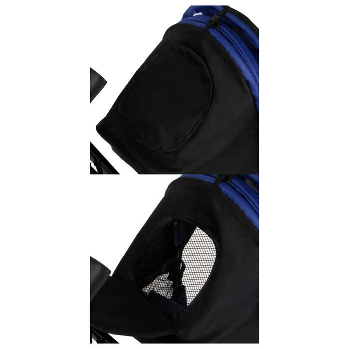 - Откидывающийся козырёк защищает от солнца и дождя.