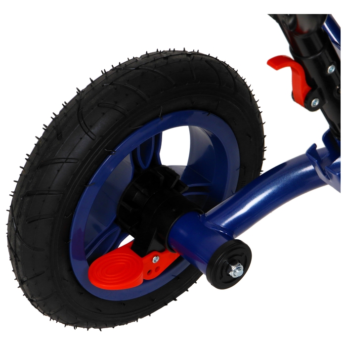 - Надувные резиновые колёса с протектором смягчают ход и обеспечивают сцепление с дорогой.