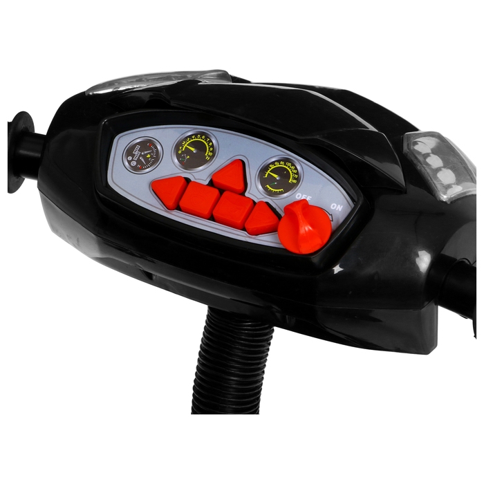 - Светомузыкальная панель со звуком и светодиодами привлекает внимание малыша, а передние фары обеспечивают видимость в тёмное время суток.