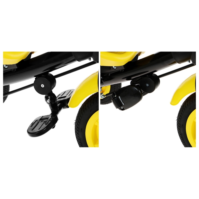 - Надувные резиновые колёса смягчают ход и обеспечивают сцепление с дорогой.