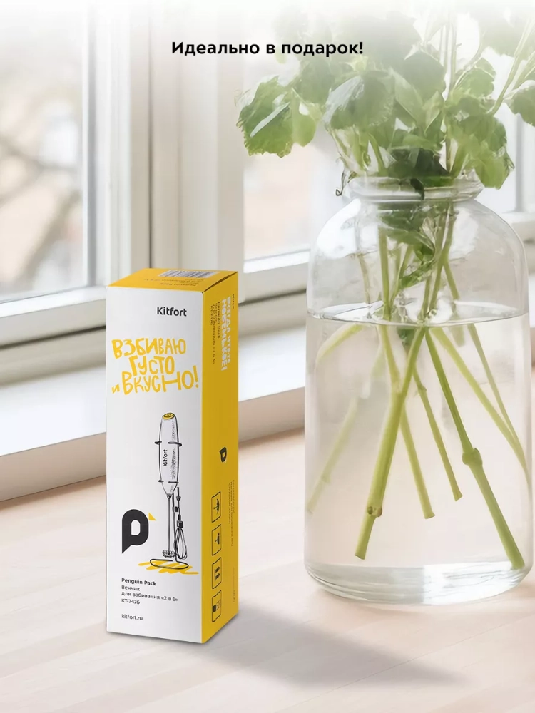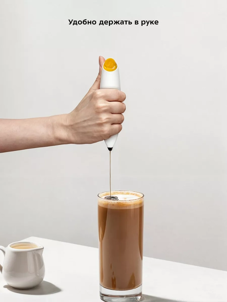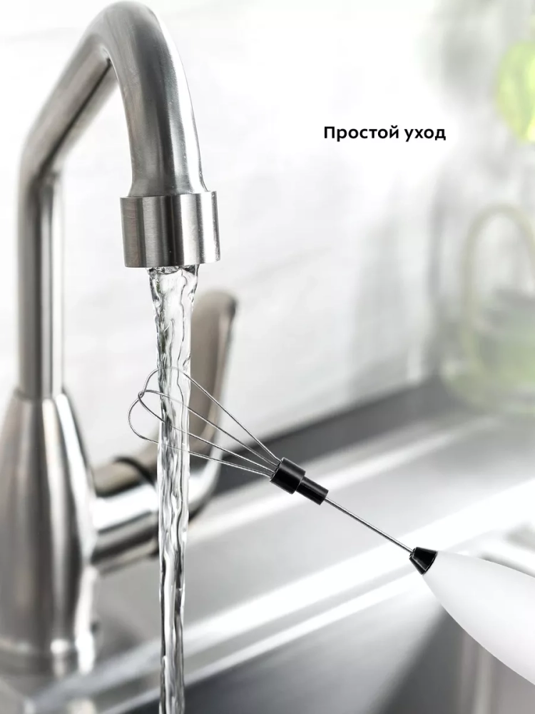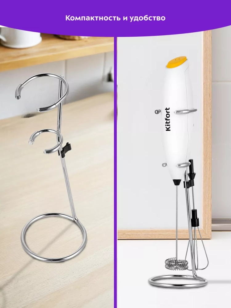 Венчик для взбивания занимает очень мало места и удобен в использовании. Для удобного хранения в комплекте есть подставка с креплением для насадки, чтобы компактно расположить устройство на столе.