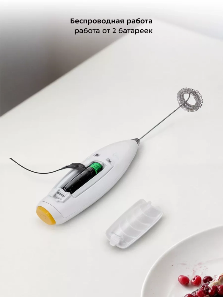 Венчик для взбивания Kitfort КТ-7476 предназначен для вспенивания молока. Однако благодаря дополнительной насадке вы можете также взбивать яйца. Внутри венчика есть маленький моторчик, который работает от 2 батареек типоразмера АА (батарейки в комплект не входят). Пользоваться прибором очень просто: налейте молоко или яичную смесь в кружку, поместите в нее венчик, нажмите на кнопку включения и удерживайте ее.