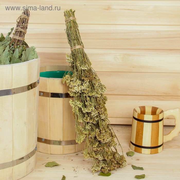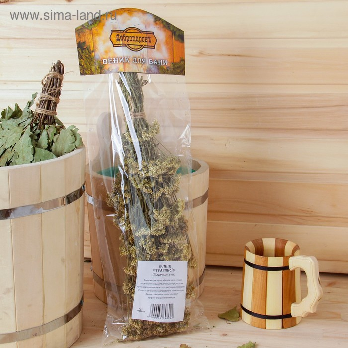 Веник для бани 45 (+-5) см ТРАВЯНОЙ из тысячелистника, в индивидуальной упаковке