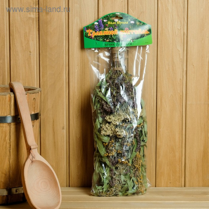 Веник для бани "Травяной коктейль" из букета различных трав, в индивидуальной упаковке