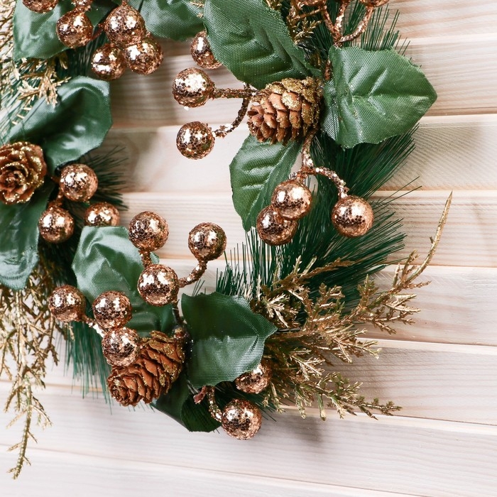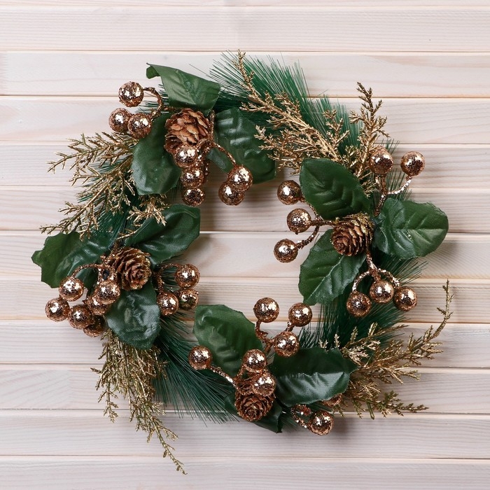 Венок новогодний d-19 см "Элит" ягодки шишки веточки, золото