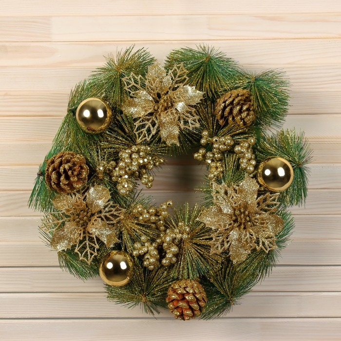 Венок новогодний d-30 см "Фестиваль блеска" резные цветы