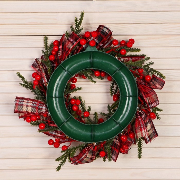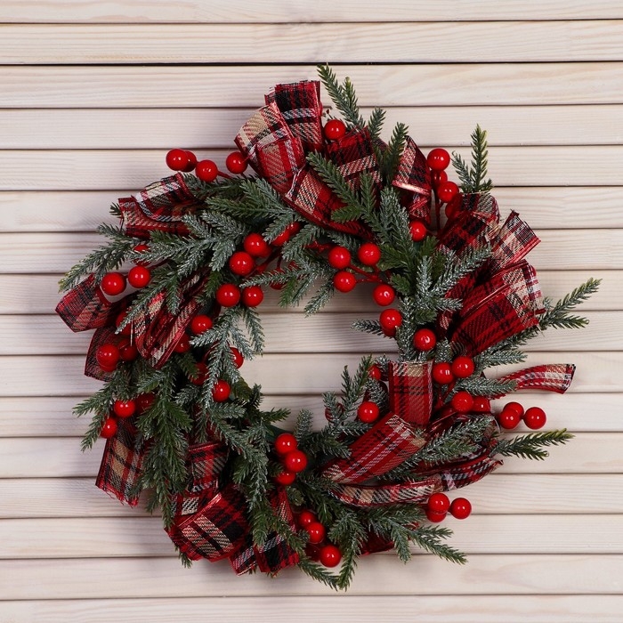 Венок новогодний d- 30 см "Уютная сказка" клетчатые ленты ягоды