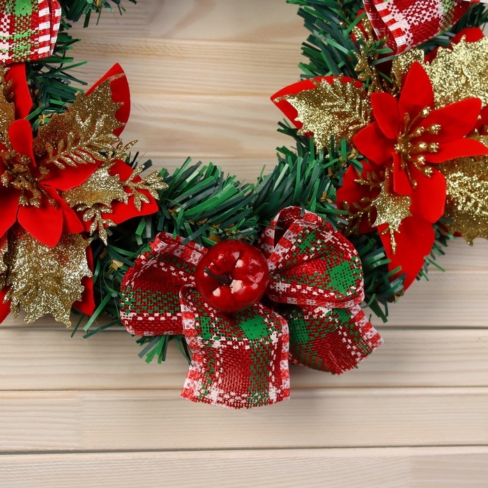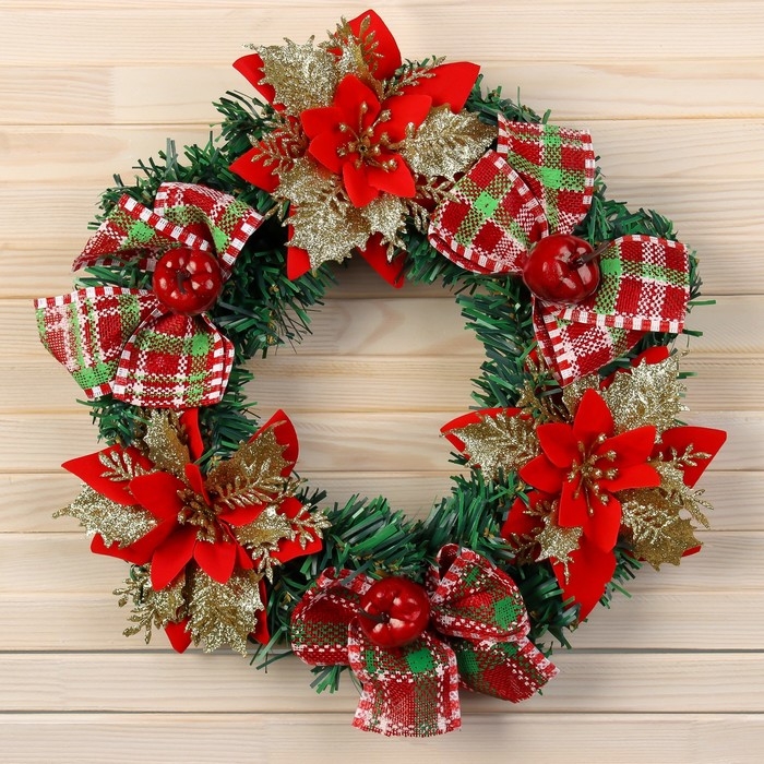 Венок новогодний d-30 см "Яркая сказка" цветы бантики ягоды
