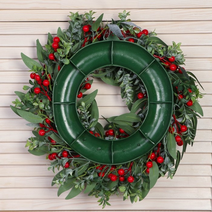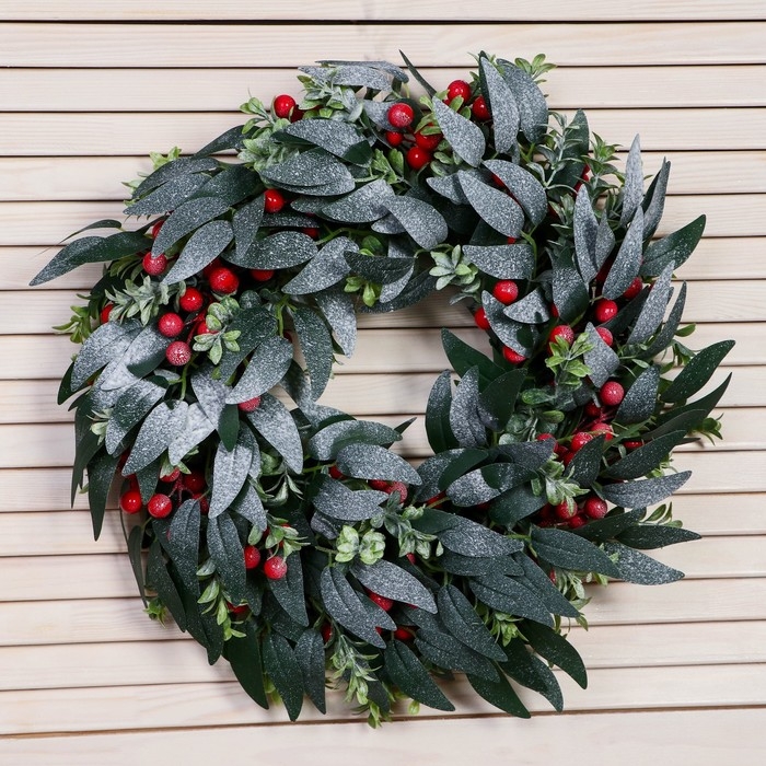Венок новогодний d- 35 см "Уютная сказка" листья зелень ягоды
