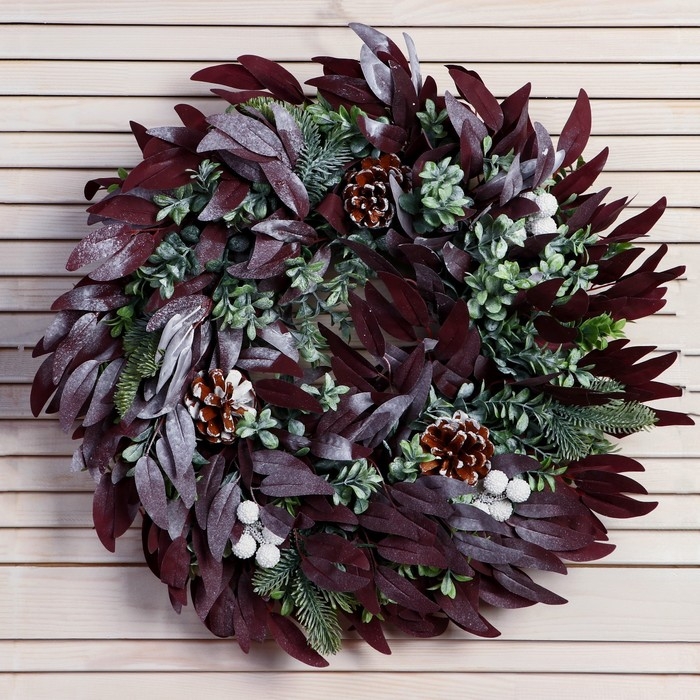 Венок новогодний d- 38 см "Уютная сказка" листья шишки зелень