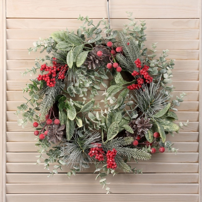 Венок новогодний d-40 см "Калина красная"