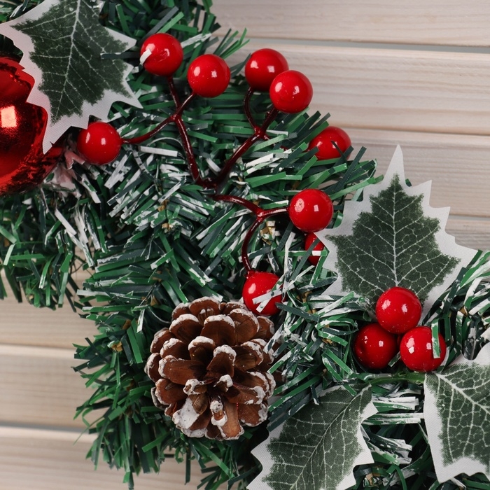 Венок новогодний d-40 см "Лесной фестиваль" ягоды листья шары шишки