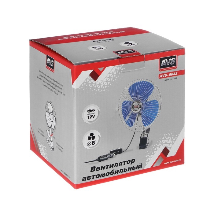 Вентилятор автомобильный AVS Comfort 8043, 12 В 6", металл, серебристый