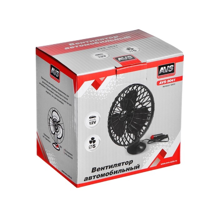 Вентилятор автомобильный AVS Сomfort 9041J, 12 В 5", пластик, чёрный