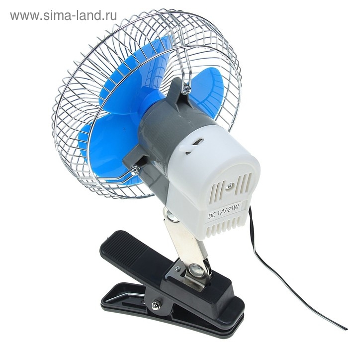 Вентилятор салона на прищепке, 12 В, провод 1.2 м, d19 см