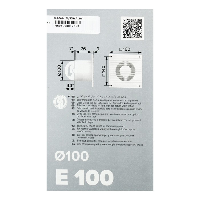 Вентилятор вытяжной ERA E 100 S С, 160x160 мм, d=100 мм