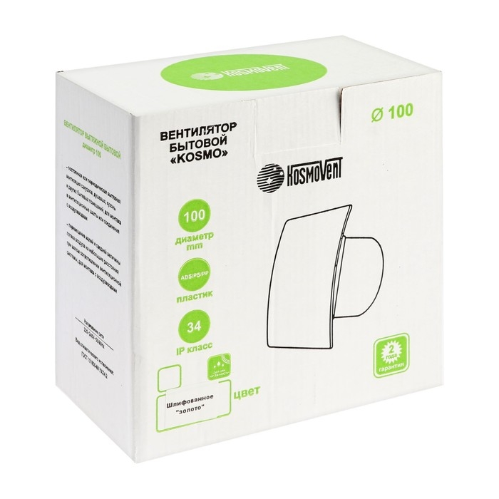 Вентилятор вытяжной "КосмоВент" KVZ100, d=100 мм, 33-41 дБ, без выключателя, матовое золото