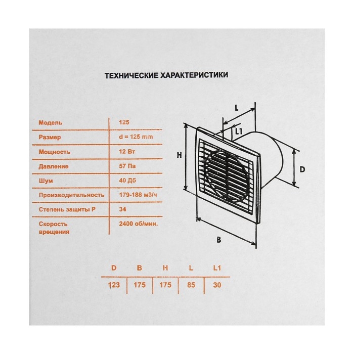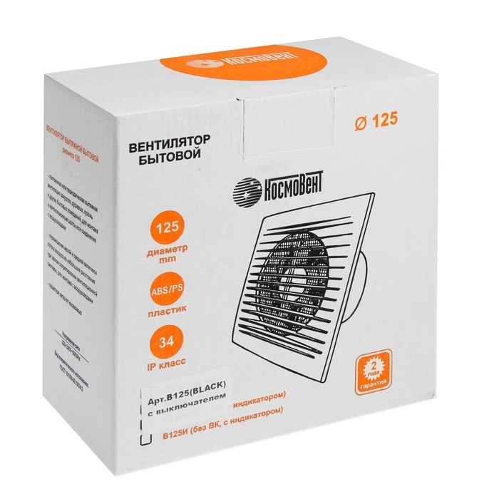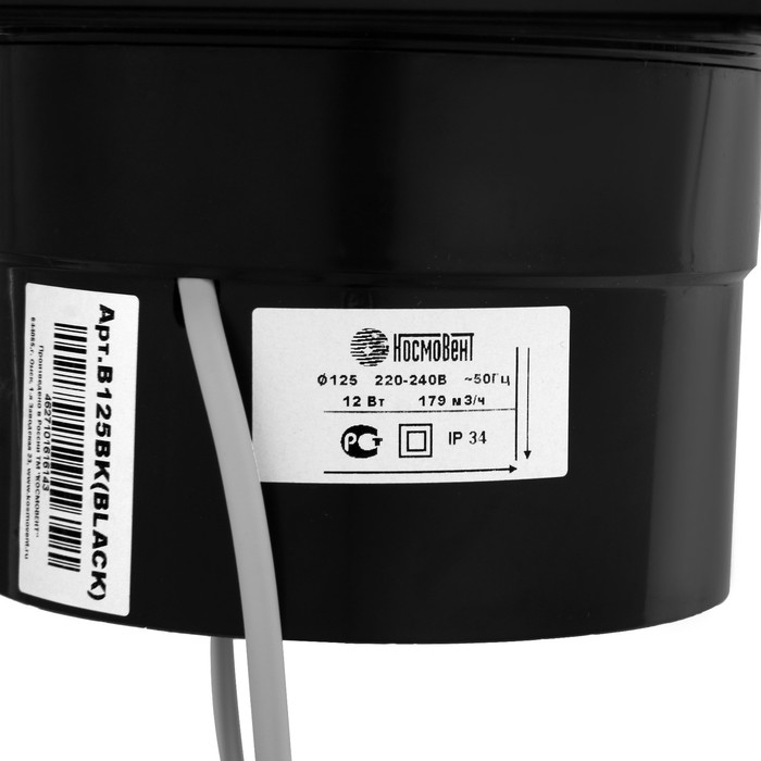 Вентилятор вытяжной "КосмоВент" В125ВК, d=125 мм, 12 Вт, 41 дБ, 160 м³/ч, с выключ., черный