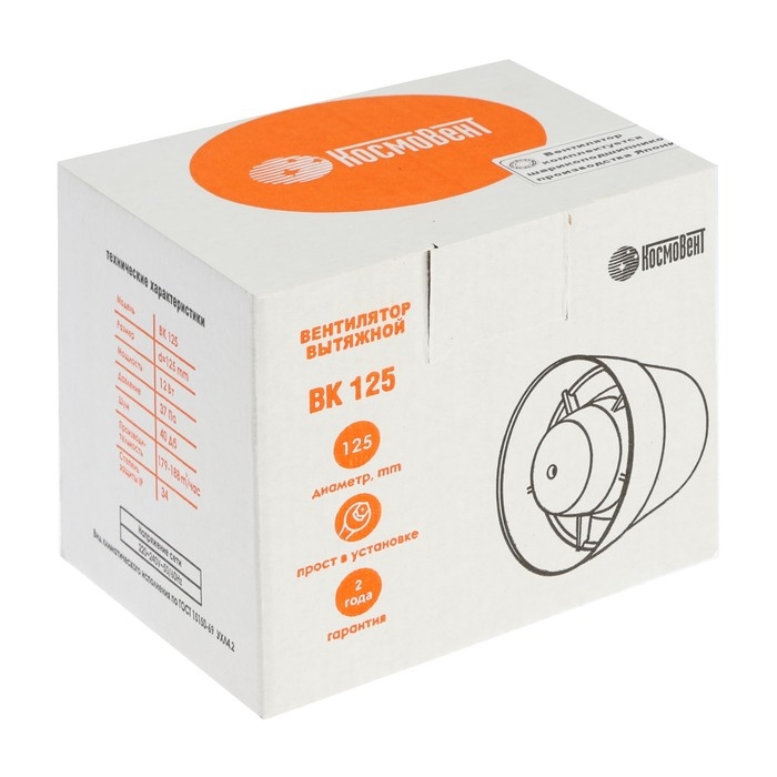 Вентилятор вытяжной "КосмоВент" ВК125ш, d=125 мм,12 Вт, 179-188 м³/ч, канальный, подшипник