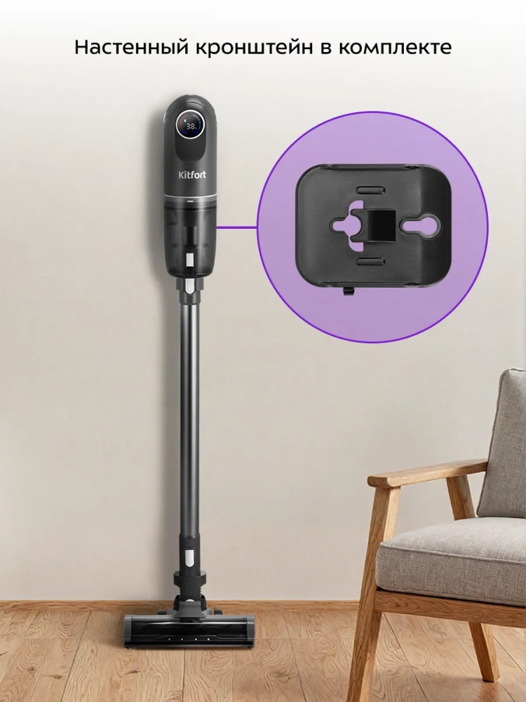 Беспроводной вертикальный пылесос Kitfort КТ-5287 очень удобен при локальной и генеральной уборке. Он компактен, всегда под рукой и готов к работе. При отсоединении удлинительной трубки и установке насадки он превращается в ручной пылесос. Его конструкция позволяет легко проникать в самые труднодоступные уголки квартиры.