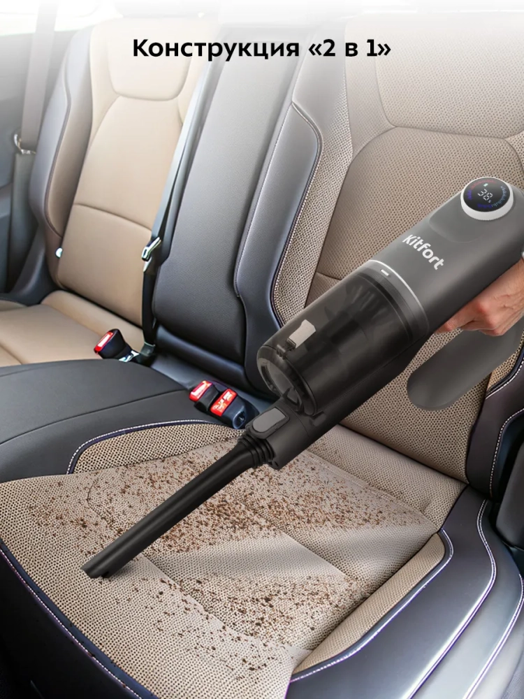 Конструкция «2 в 1» предусматривает использование ручного пылесоса. Им можно пропылесосить углы и плинтусы, обивку мебели, пыль со шкафов, шкафчики на кухне или в гостиной, книжные полки, коврики в автомобиле или багажник.