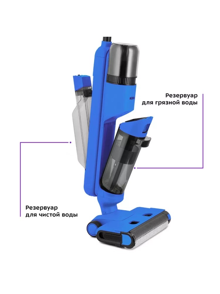 Беспроводной вертикальный моющий пылесос Kitfort КТ-5238 очень удобен при проведении влажной уборки. Благодаря работе от аккумулятора во время использования пылесос не нужно включать в сеть и провода не будут мешаться под ногами. Турбощетка оснащена устройством для электролиза воды, которое позволяет очистить воду посредством электрического разряда.