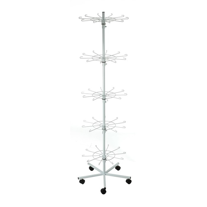 Вертушка на колёсах, 5 ярусов по 10 крючков, 50×50×190, цвет белый