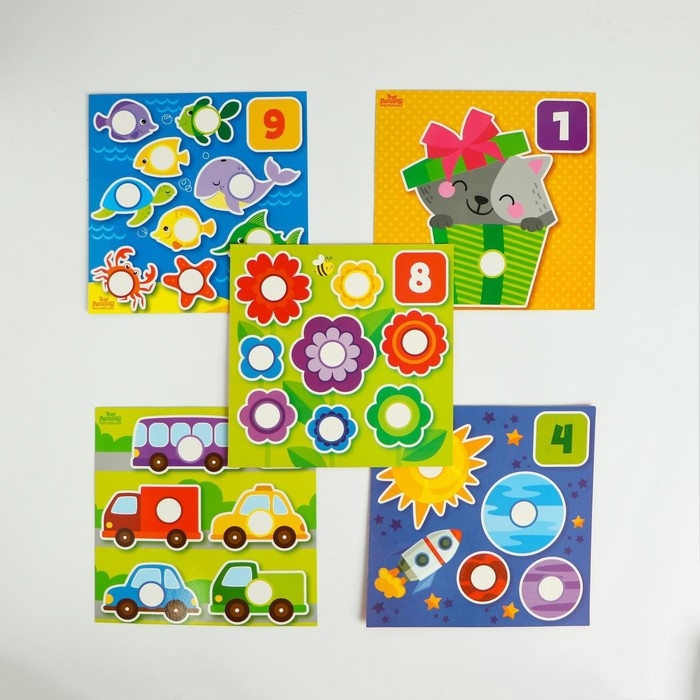 Развивающий набор "Весёлые кружочки. Учимся считать" - 10 ярких картинок, 50 деревянных кругов, 5 основных цветов для игры и обучения!