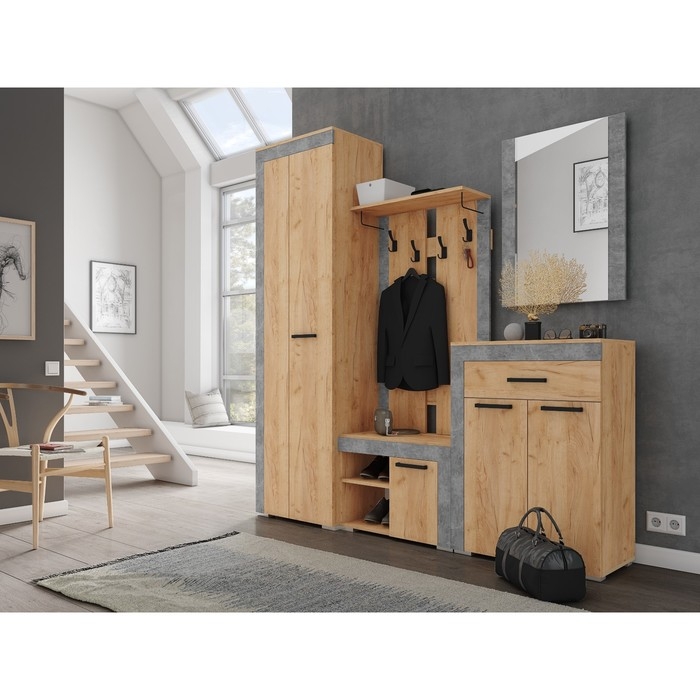 Прихожая Домино, 1500х350х2116, Крафт Золотой/Бетон