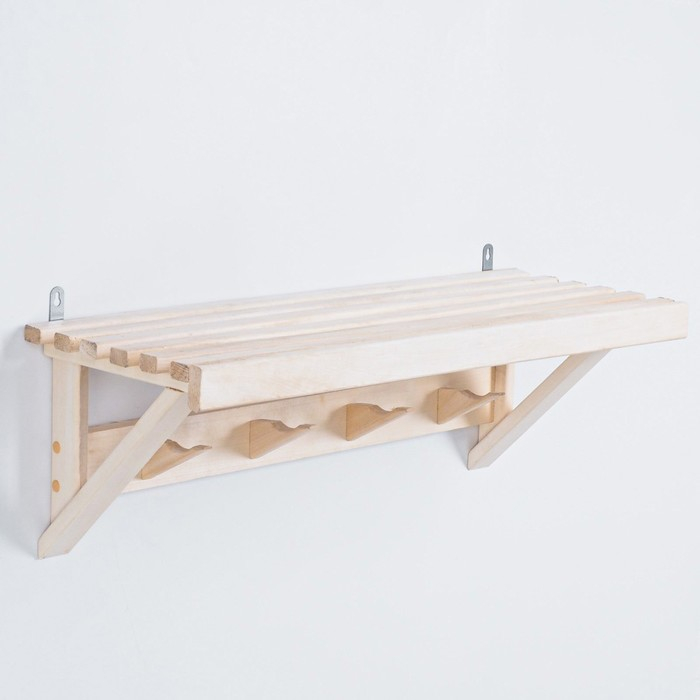 Вешалка деревянная с полкой, 4 крючка, 67х24х24 см