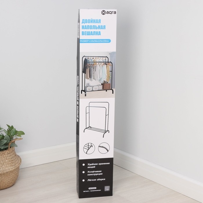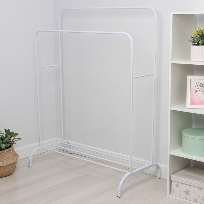 Вешалка двойная напольная металлическая для одежды, с полкой, 110×62×150 см, цвет белый