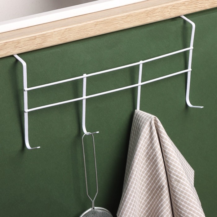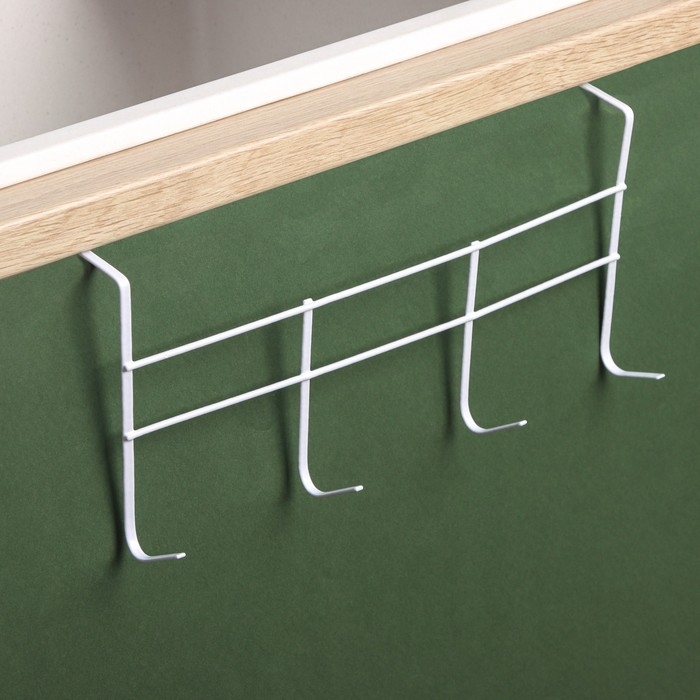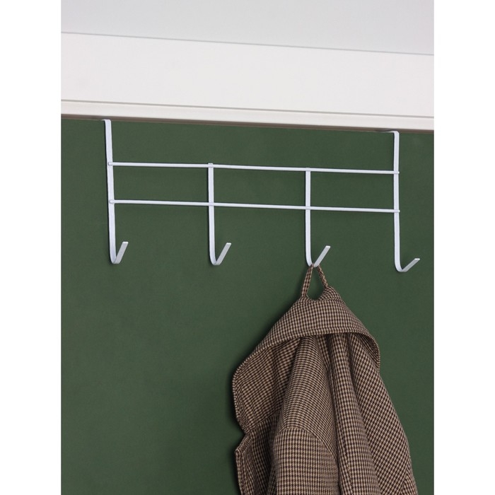 Вешалка на дверь на 4 крючка Доляна «Моно», 34,5×8,5×16 см, цвет белый