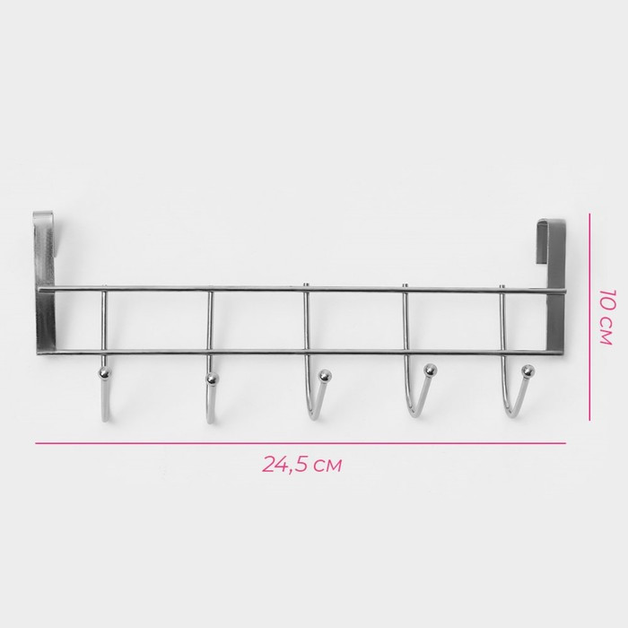 Вешалка на дверцу толщиной 2 см, Доляна «Блеск», 5 крючков, 24,5x10x6 см, цвет хром