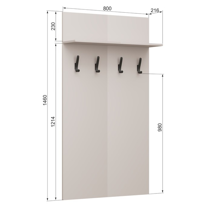 Вешалка настенная Чарли 4, 800х216х1460, Кашемир
