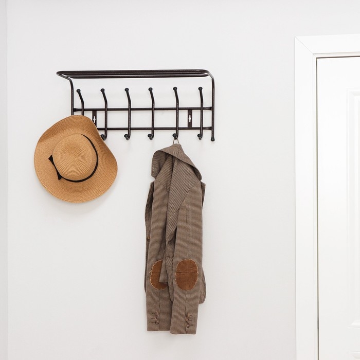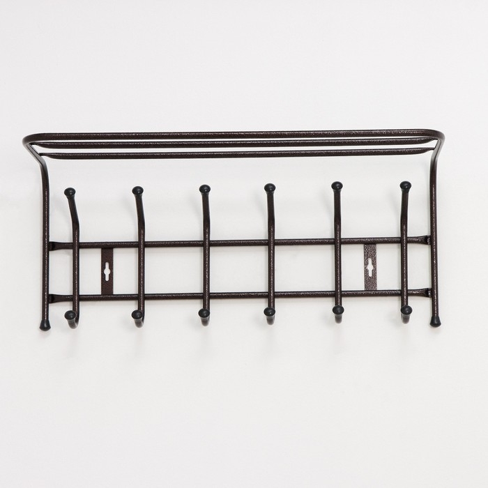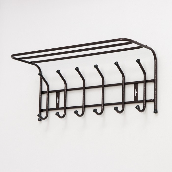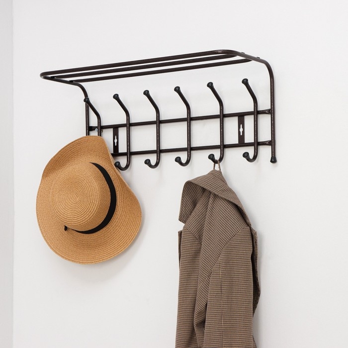 Вешалка настенная с полкой на 6 крючков, цвет медный