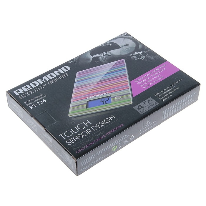 Кухонные весы REDMOND RS-736— изысканная ультракомпактная новинка из экологичной серии с платформой из закалённого стекла, сенсорной панелью управления, ЖК-дисплеем с подсветкой и функцией автоотключения. Приятной конструктивной особенностью этой модели является возможность хранения прибора на крючке.
