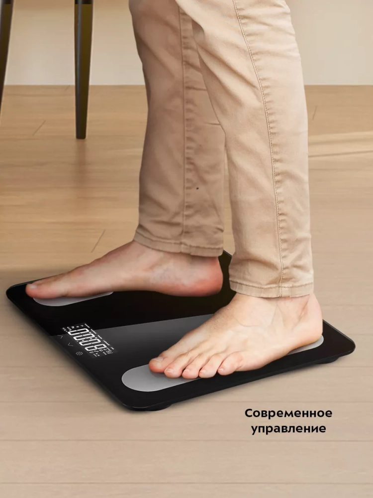 Весы оснащены жидкокристаллическим дисплеем с крупным отображением цифр, что делает их использование максимально удобным. Платформа выполнена из высокопрочного полированного стекла, а прорезиненные ножки обеспечивают дополнительную устойчивость весам и предотвращают их скольжение по полу, что гарантирует безопасность во время взвешивания. Токопроводящие электроды вмонтированы в платформу, они необходимы для проведения биоимпедансного анализа.
