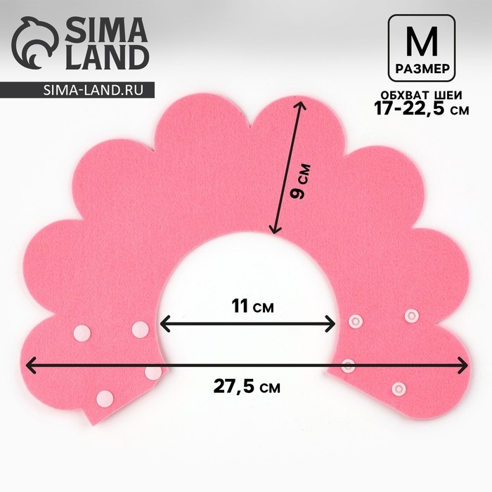 Ветеринарный защитный воротник для кошек и собак, розовый, размер M (обх. шеи 17-22,5 см)
