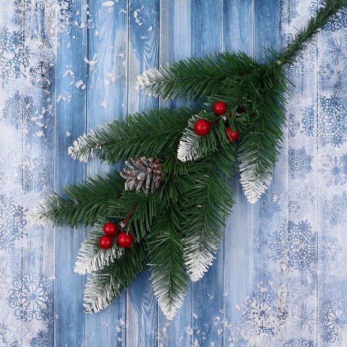 Ветка искусственная декоративная "Рождевственская" шишки золото -ягоды 40 см