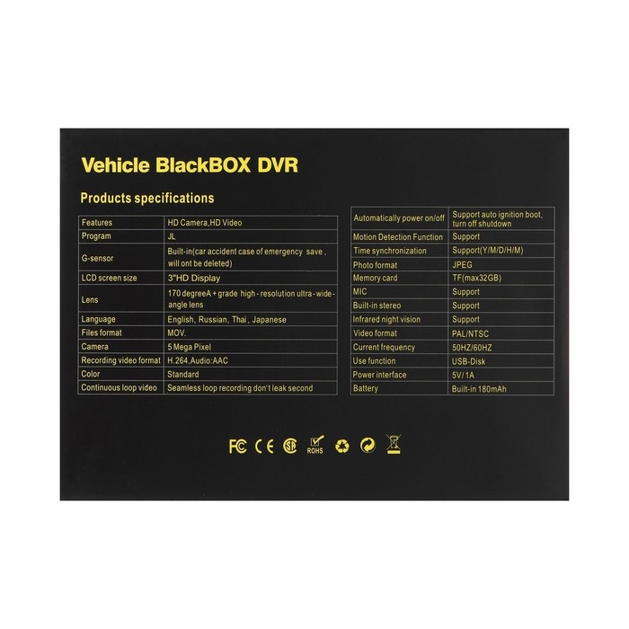 Видеорегистратор TORSO, WDR FHD 1080P, TFT 3, обзор 120°