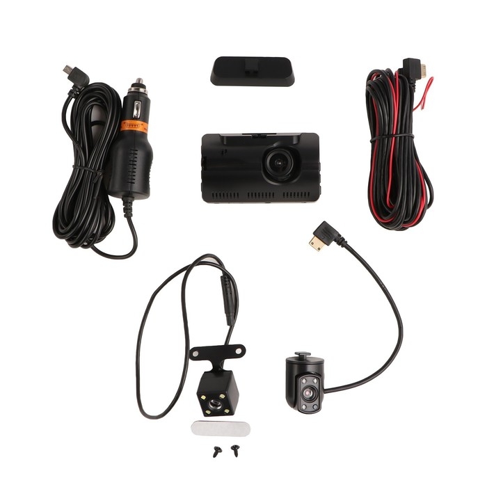 - Три камеры: устройство оснащено тремя камерами - основной, фронтальной и камерой заднего вида. Основная камера ведет запись в высоком разрешении FHD 1080, фронтальная камера обеспечивает мониторинг ситуации впереди автомобиля, а камера заднего вида помогает при парковке и маневрировании.