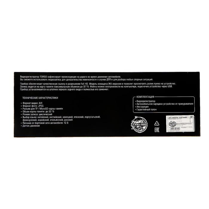 Видеорегистратор TORSO, 2 камеры, HD 1080P, размер 30×8.5 см, TFT 3.5, обзор 120°