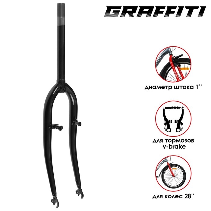 Передняя вилка подходит для велосипедов с диаметром колёс 28 дюймов. Рулевой шток для резьбовой рулевой колонки, под ось втулки 3/8. На вилке есть крепления для тормоза V-brake. Изготовлена из стали.