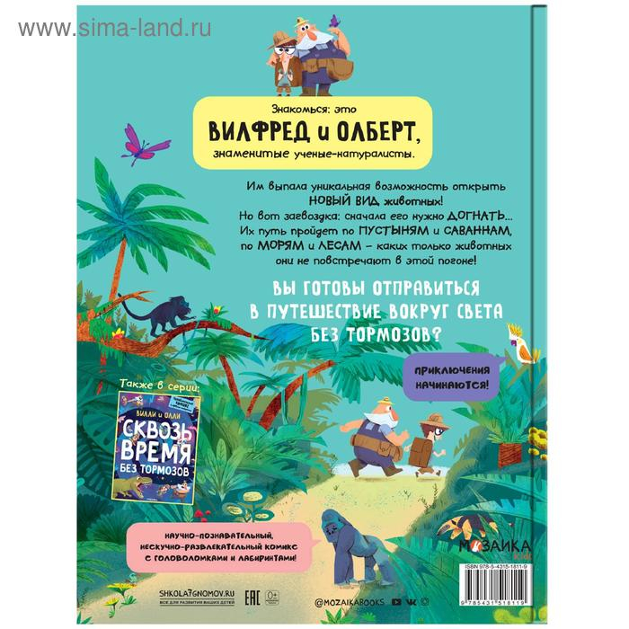 Знакомьтесь: это Вилфред и Олберт, знаменитые ученые-натуралисты. Им выпала уникальная возможность открыть новый вид животных! Но вот загвоздка: сначала его нужно догнать… Их путь пройдет по пустыням и саваннам, по морям и лесам – каких только животных они не повстречают в этой погоне! В книге «Вокруг света без тормозов» из серии «Вилли и Олли. Познавательный комикс» вас ждет завораживающий мир, который создал популярный детский автор и художник Стефан Ломп. Он наполнил этот мир огромным количеством удивительных животных и существ, головоломками и заданиями на логику и внимательность, забавными диалогами главных героев. Благодаря большому формату удобно подолгу рассматривать книгу, находя всё новые и новые подробности и детали на иллюстрациях.