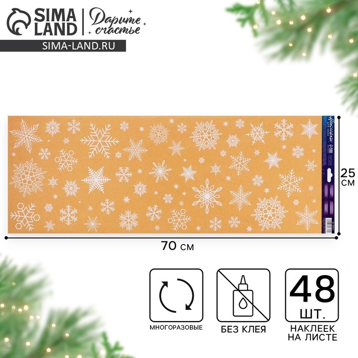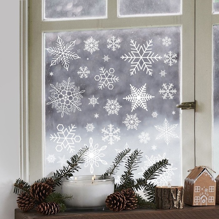 Виниловые наклейки на окна «Снежинки», многоразовые, 70 х 25 см, Новый год