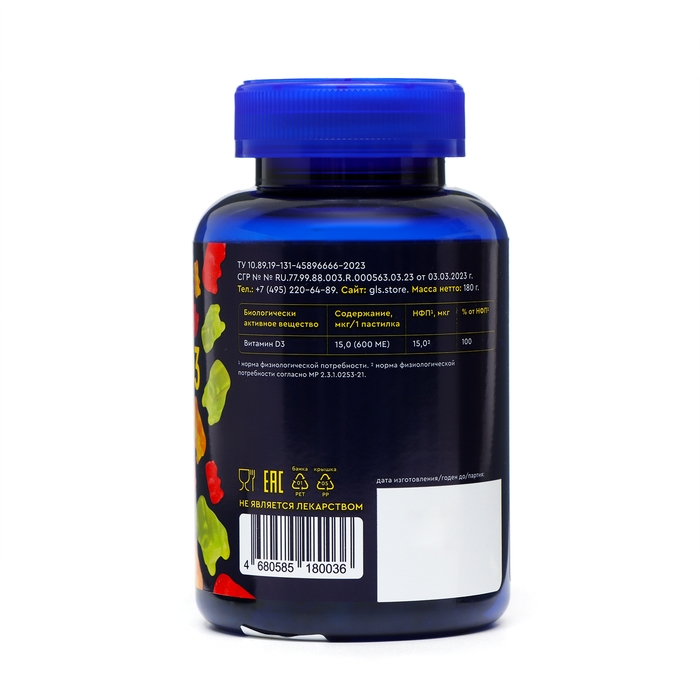 Витамин D3 для детей GLS со вкусом вишни, клубники и лимона - это специальное средство, которое помогает поддерживать здоровье костей и зубов у детей. Он содержит витамин D3, который является важным минералом для организма и участвует во многих процессах.