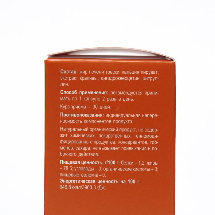 Состав: жир печени трески, кальция пируват, экстракт крапивы, дигидрокверцетин, цитруллин.