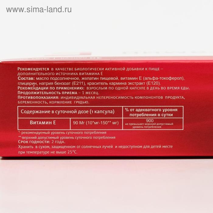 Состав: витамин E, масло подсолнечное, желатиновая оболочка.