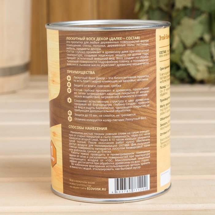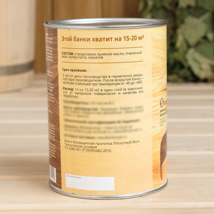 Влаго-биозащитная пропитка "Лоскутный воск ДЕКОР", капучино, 1л, железная банка